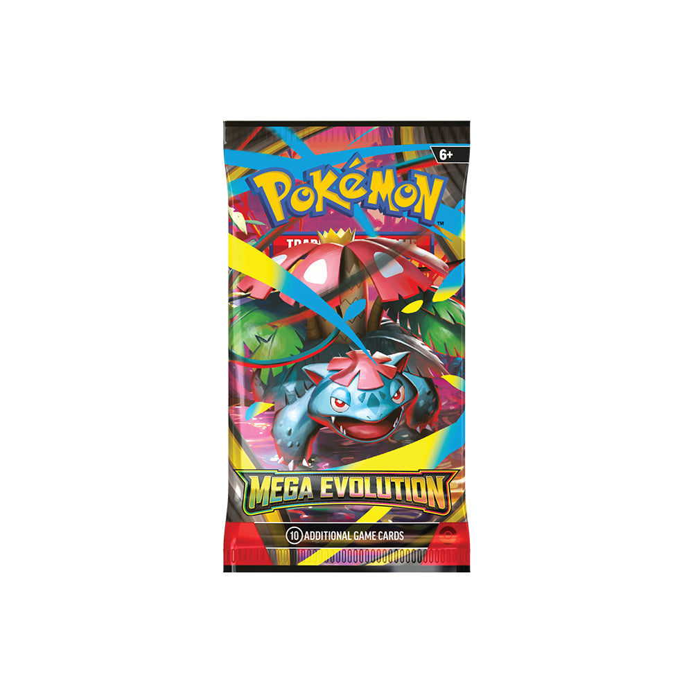 Dvigni svojo moč na povsem novo raven! Pokémoni vseh tipov si prizadevajo doseči vrhunec svoje moči in se pridružiti elitni skupini Mega Evolution Pokémon ex! Obvladaj mogočno avro Mega Lucaria ex, sprosti neizmerno energijo Mega Gardevoir ex in se poveži z drugimi izjemnimi Pokémoni, ki premorejo uničujoče napade ter izjemno visoke vrednosti HP-ja. A pazite – z večjo močjo prihaja tudi večja odgovornost in tveganje! Izberi svoje Pokémon zaveznike in se pripravi na epske dvoboje, kot jih še ni bilo v Pokémon TCG: Mega Evolution!