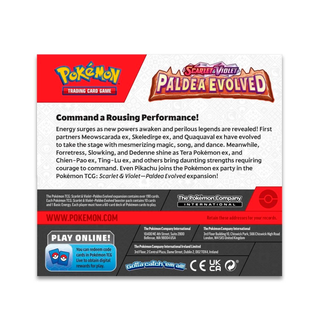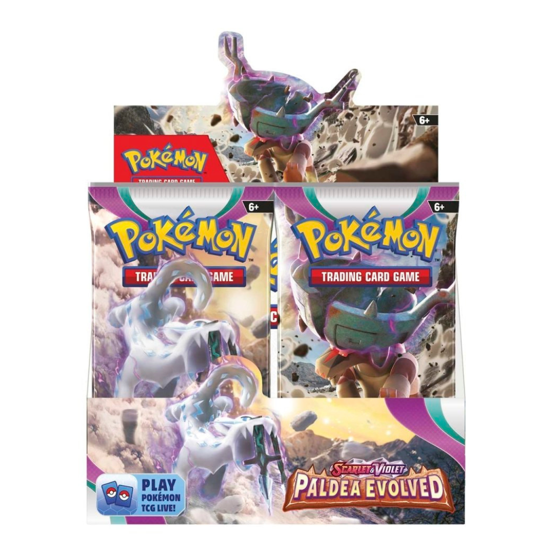 V izdelku boste našli: • 36 Pokémon TCG: Scarlet & Violet Paldea Evolved booster paketov • vsak booster paket vsebuje 10 kart in 1 osnovno energijo, karte se razlikujejo glede na paket
